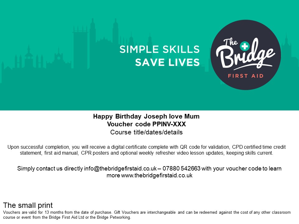 Simply choose the course and we will send you a voucher, complete with personal message to the recipient.